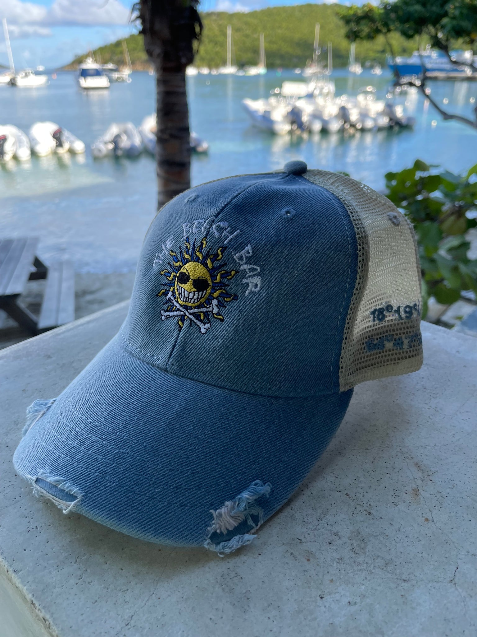 Distressed Unstructured Trucker Hat With Our Embroidered Logo - Denim