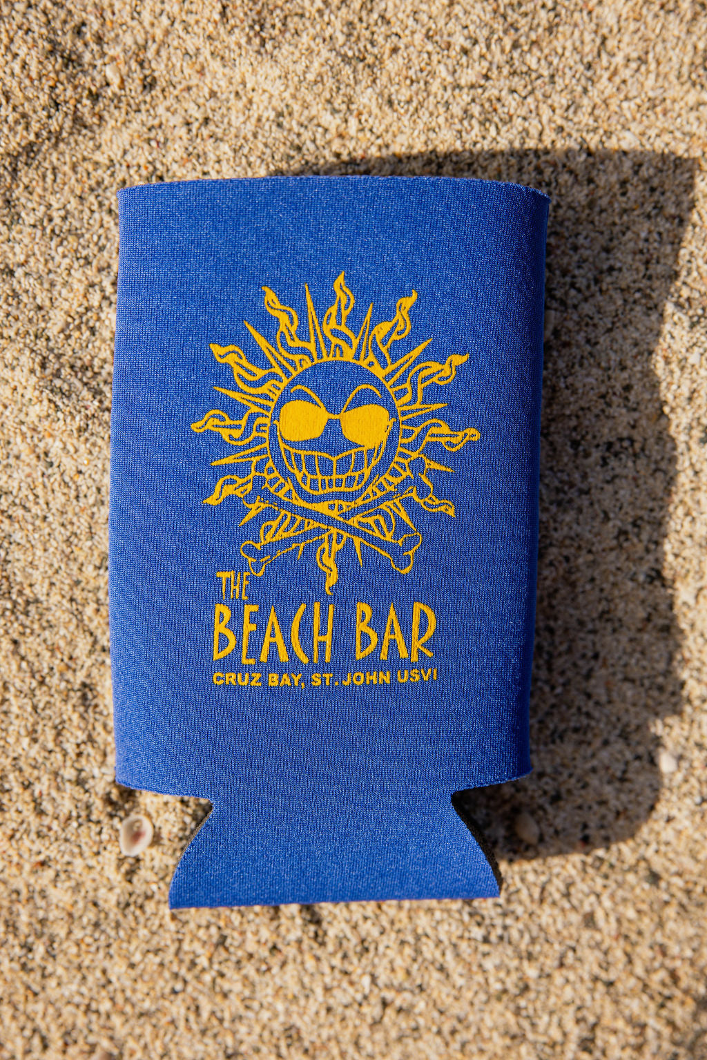 Side 2: Beach Bar Logo/St. John Outline & Text "what happens at the beach.... starts at The Beach Bar"