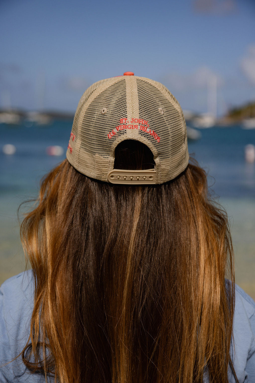 Distressed Unstructured Trucker Hat With Our Embroidered Logo - Coral